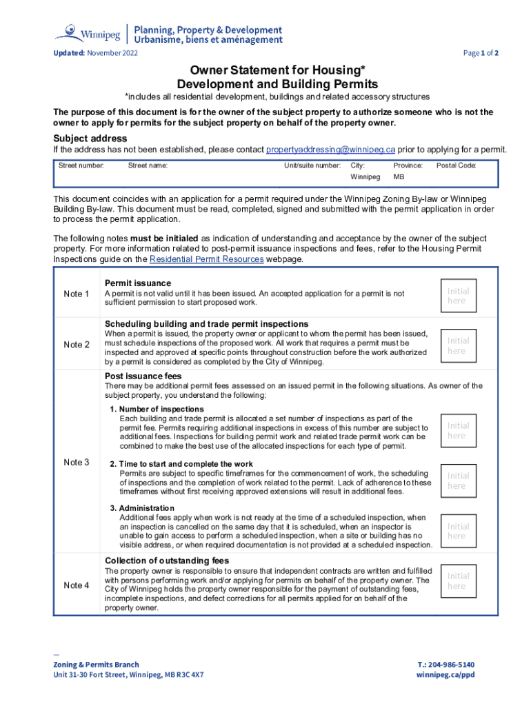 Updated: November 2022Page 1 of 2Owner Statement for Housing* Development and Building Permits×includes all residential development, buildings and related accessory structures The purpose of this
