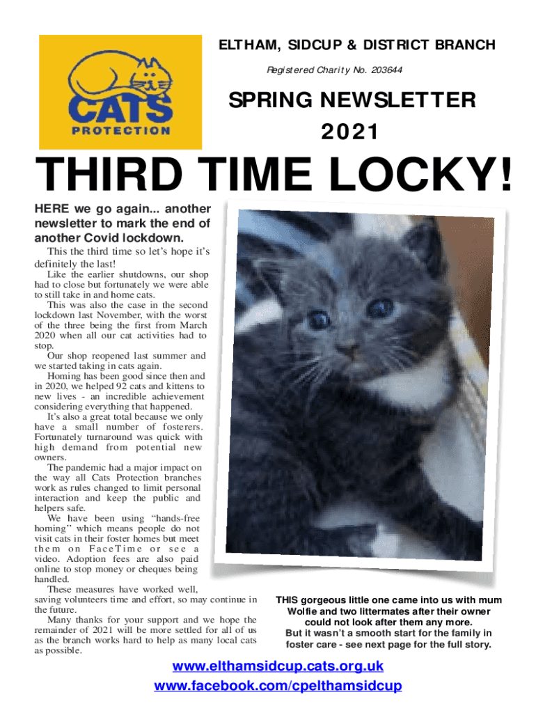 ETHAN, SID CUP & DISTRICT BRANCH Registered Charity No. 203644SPRING NEWSLETTER 2021THIRD TIME LOCK! HERE we go again... another newsletter to mark the end of another COVID-19 lockdown. This is the
