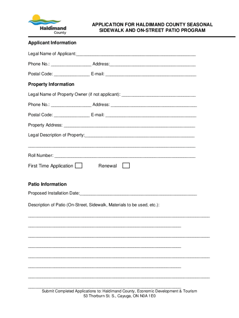 APPLICATION FOR HALDIMAND COUNTY SEASONAL