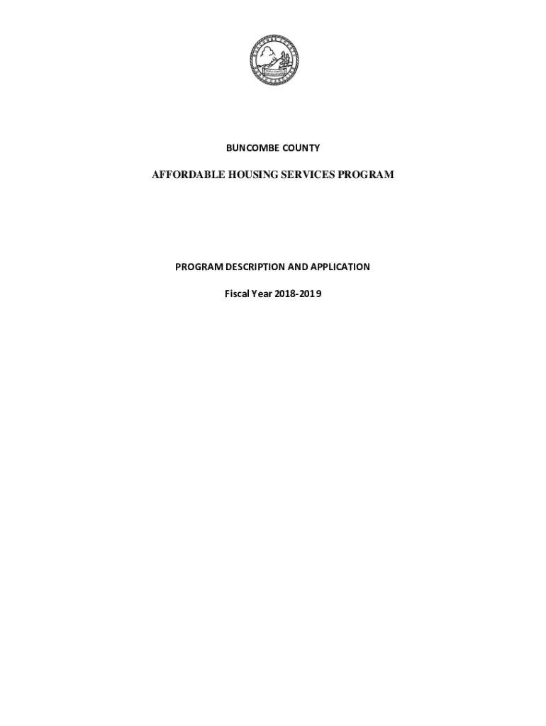 BUNCOMBE COUNTY AFFORDABLE HOUSING SERVICES PROGRAMPROGRAM DESCRIPTION AND APPLICATION Fiscal Year 20182019Introduction Affordable housing opportunities for all segments of the community are recognized