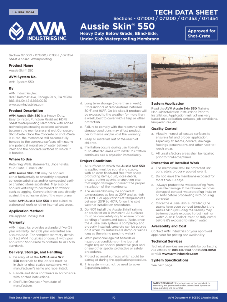 TECH DATA SHEET. A. RR#: 26044Sections 071000 / 071300 / 071353 / 071354Aussie Skin 550Approvedfor