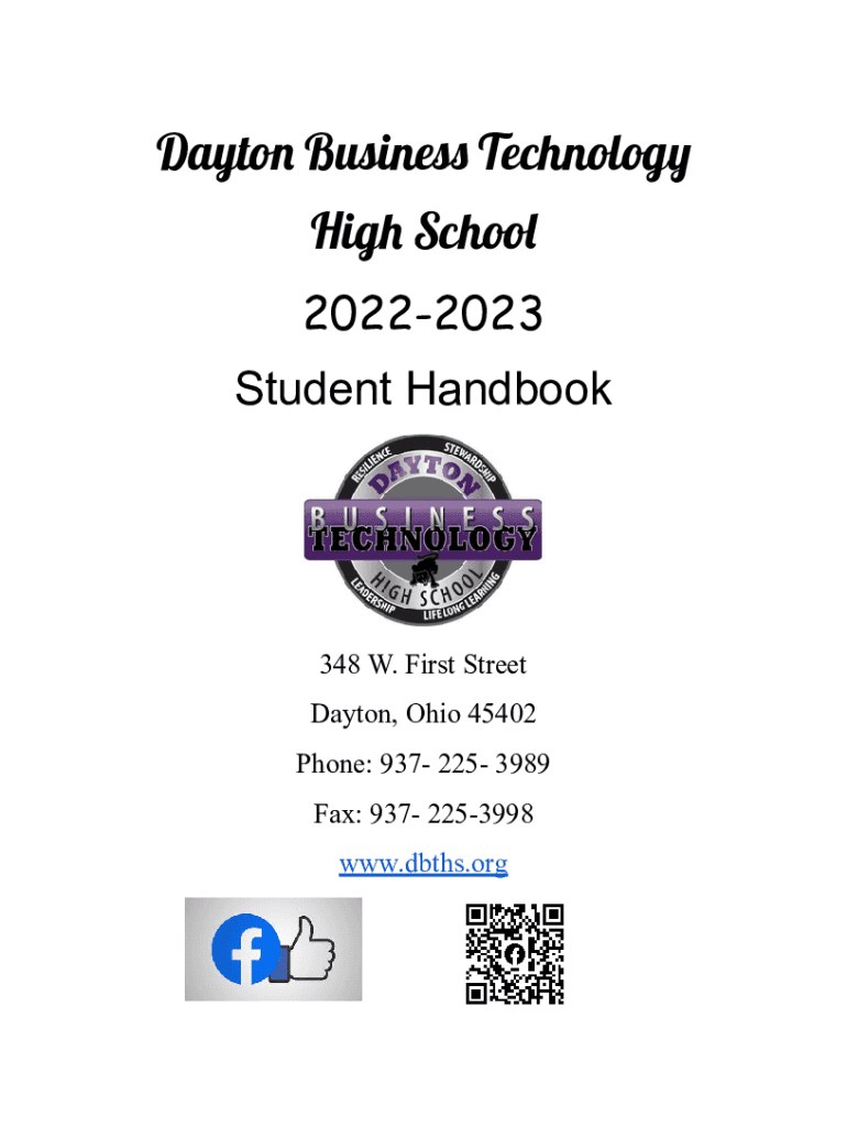 Dayton Business Technology High School 20222023 Student Handbook348 W. First Street Dayton, Ohio 45402 Phone: 937 225 3989 Fax: 937 2253998 www.dbths.orgStudent Handbook, Updated 7/10/2022Table of