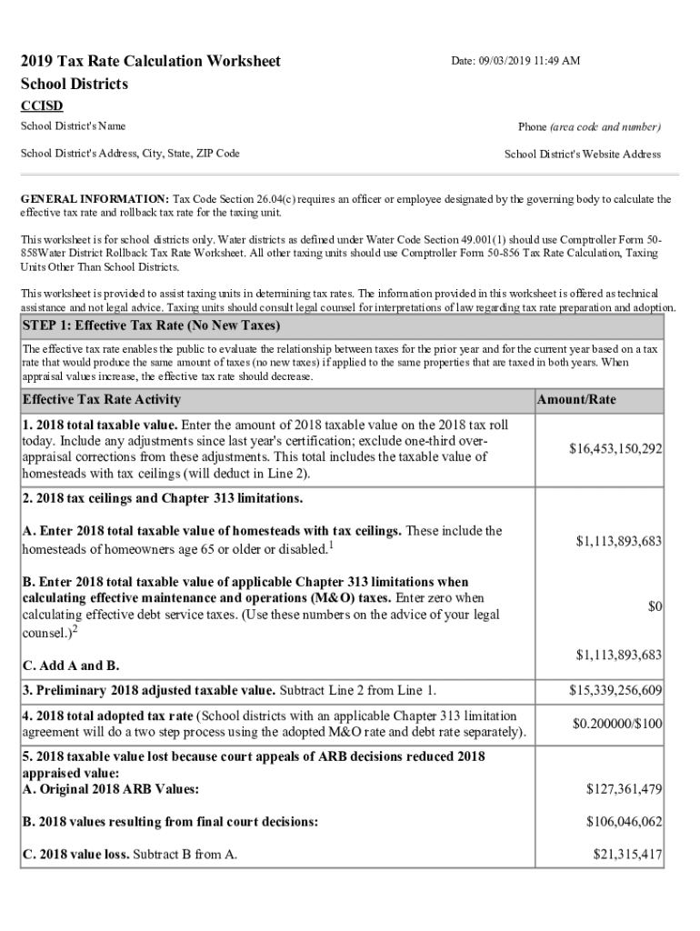 2019 Tax Rate Calculation Worksheet