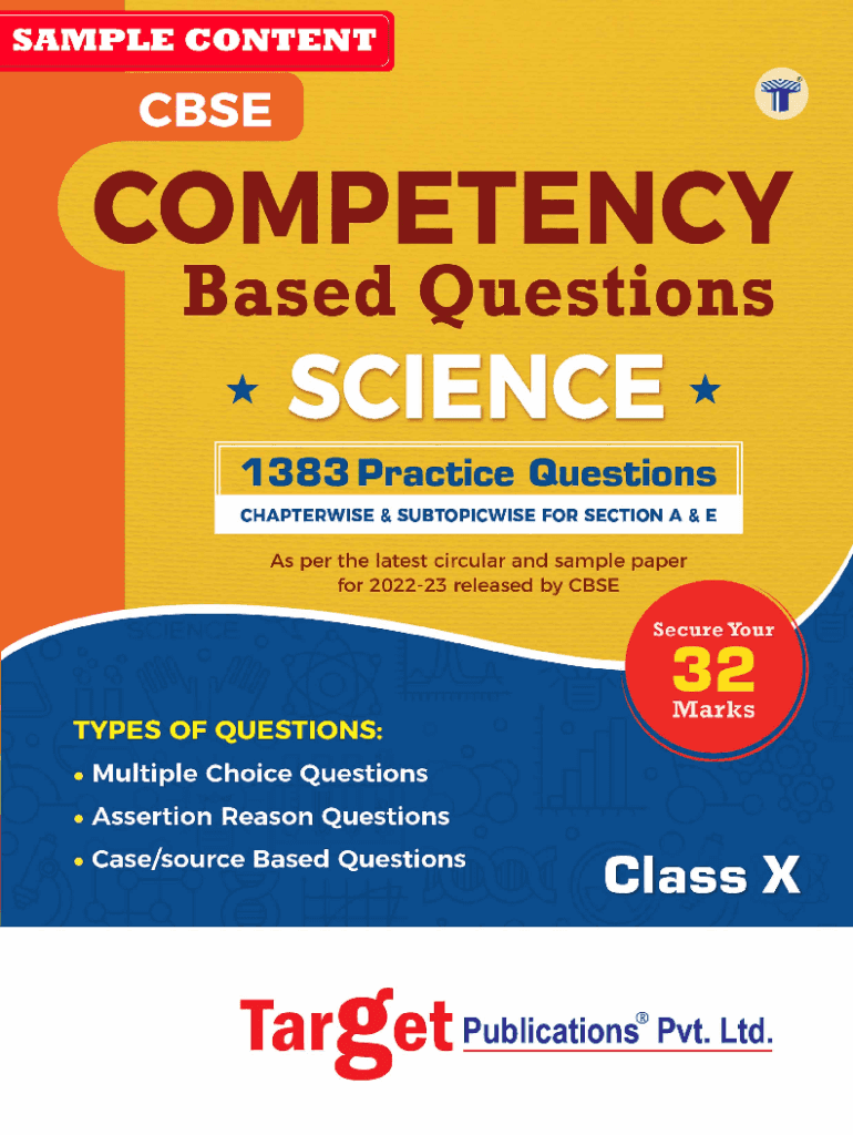 Class TNT(SECTION A & E)enSCIENCEtWritten as per Competency Based Assessment adopted by CBSE from National Education Policy 2020 for Board Examination of Class Salient Features Includes 1383 Questions