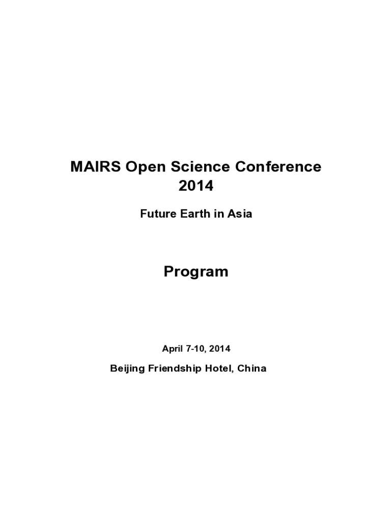 PAIRS Open Science Conference 2014 Future Earth in AsiaProgramApril 710, 2014Beijing Friendship Hotel, ChinaBackground ..........................................................................................................................