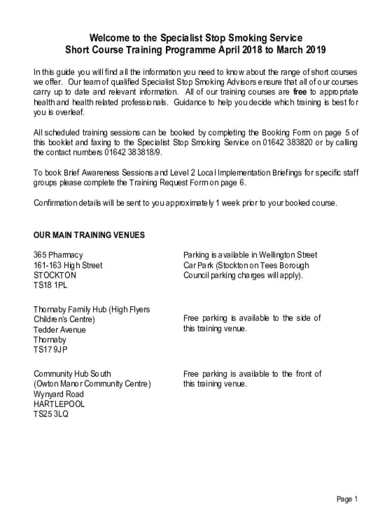 Welcome to the Specialist Stop Smoking Service Short Course Training Program April 2018 to March 2019 In this guide you will find all the information you need to know about the range of short courses