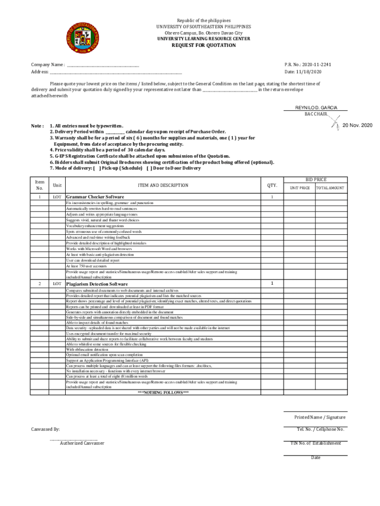 UNIVERSITY LEARNING RESOURCE CENTERREQUEST FOR QUOTATIONCompany Name : ___