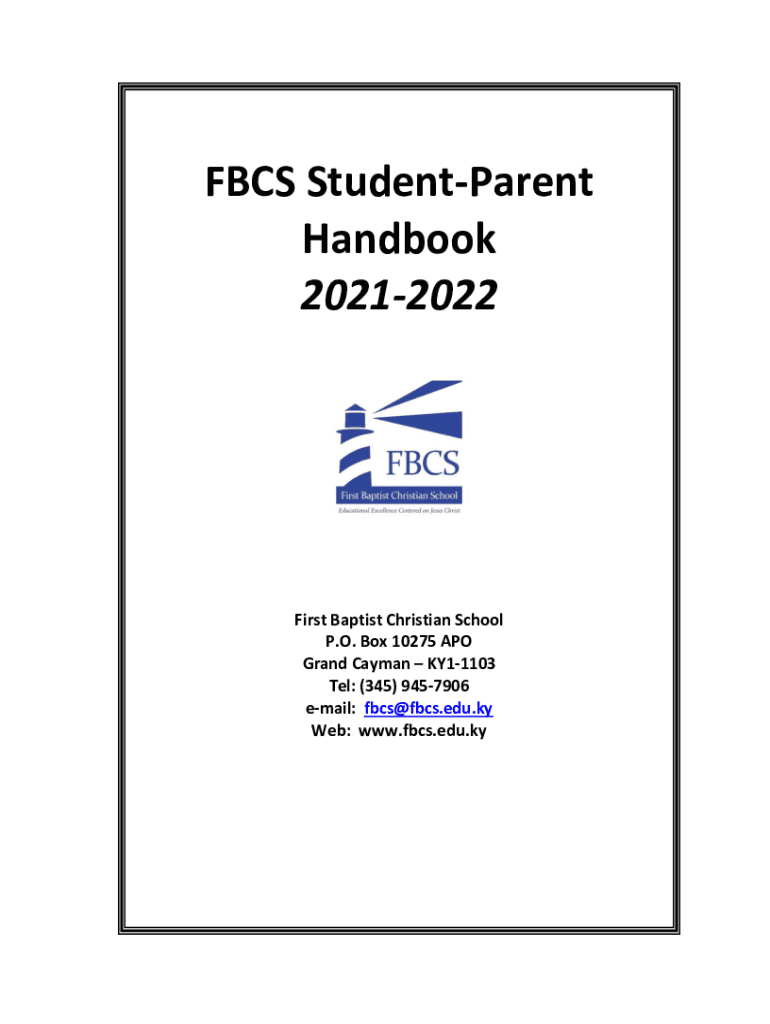 Web: www.fbcs.edu.kyTABLE OF CONTENTSGeneral Information616Academics1824Communication26Conduct