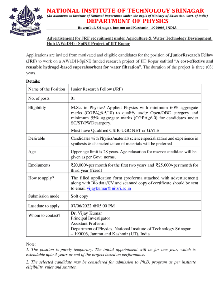 Get, Create, Make and Sign national institute of technology