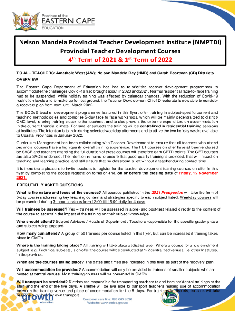 Get the free Nelson Mandela Provincial Teacher Development Institute ...