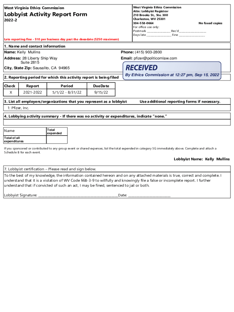 Get the free Name: Kelly Mullins - ethics wv