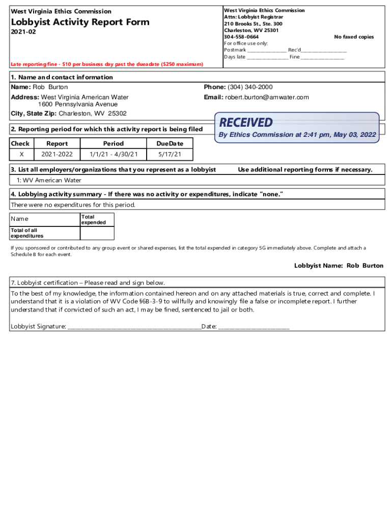 Get the free Name: Rob Burton - ethics wv