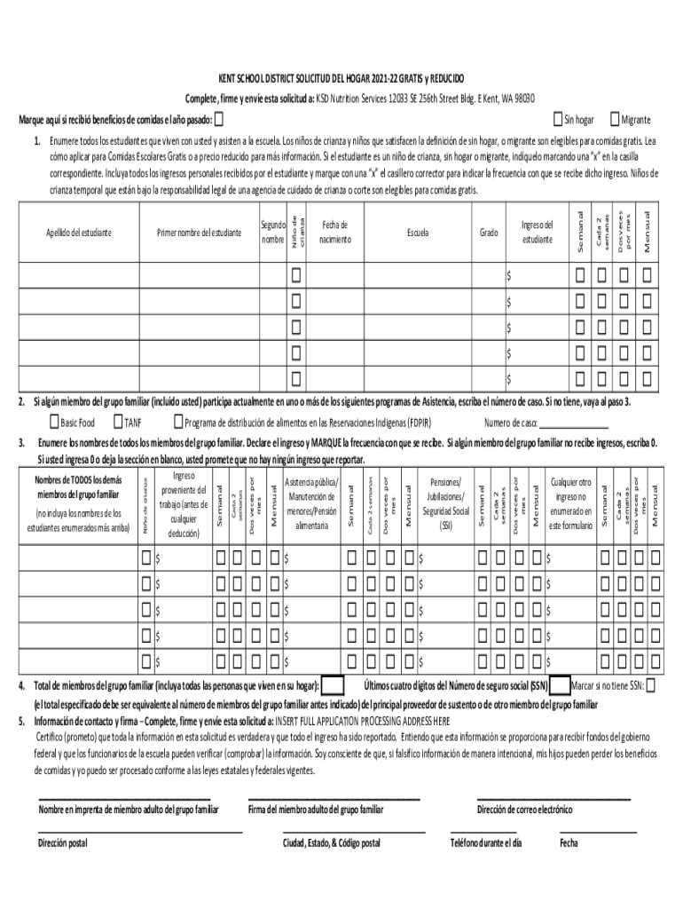 KENT SCHOOL DISTRICT SOLICITED DEL HAGAR 202122 GRATIS y REDUCED