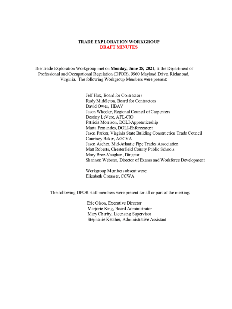 DRAFT MINUTEST he Trade Exploration Workgroup met on Monday, June 28, 2021, at the Department of