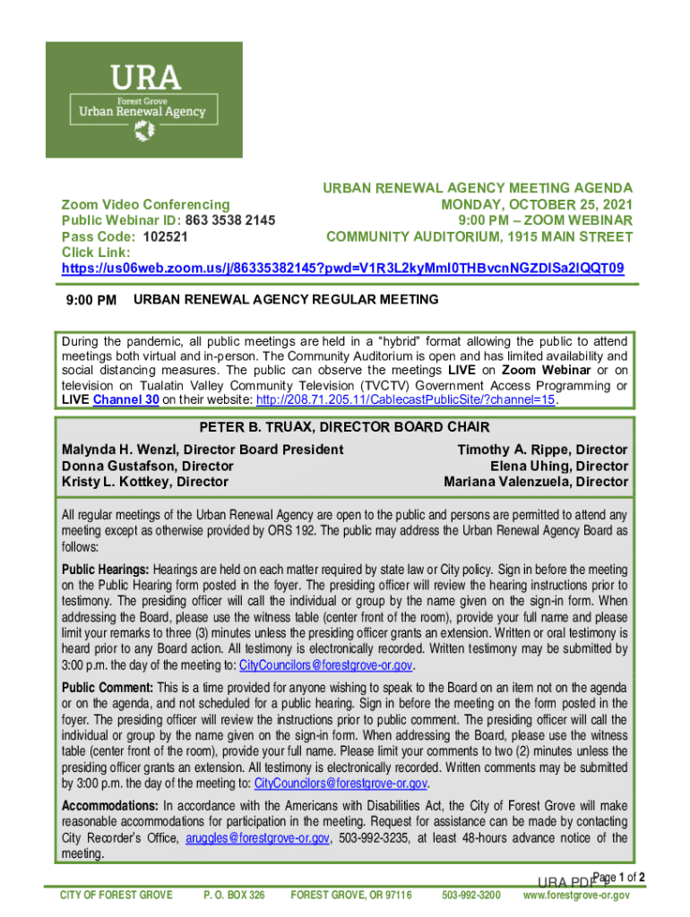 Get the free Urban Renewal Agency (Zoom Webinar)Forest Grove Oregon