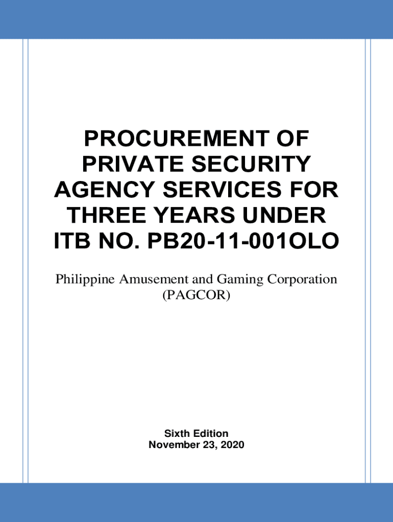PROCUREMENT OF PRIVATE SECURITY AGENCY SERVICES FOR THREE YEARS UNDER ITB NO. PB2011001OLO Philippine Amusement and Gaming Corporation (PAYCOR)Sixth Edition November 23, 20201Table of Contents Glossary