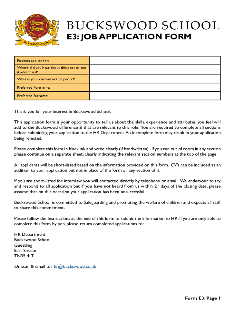 LOCKWOOD SCHOOL E3: JOB APPLICATION FORM Position applied for: Where did you hear about this post or see it advertised? What is your current notice period? Preferred Forename: Preferred Surname:Thank