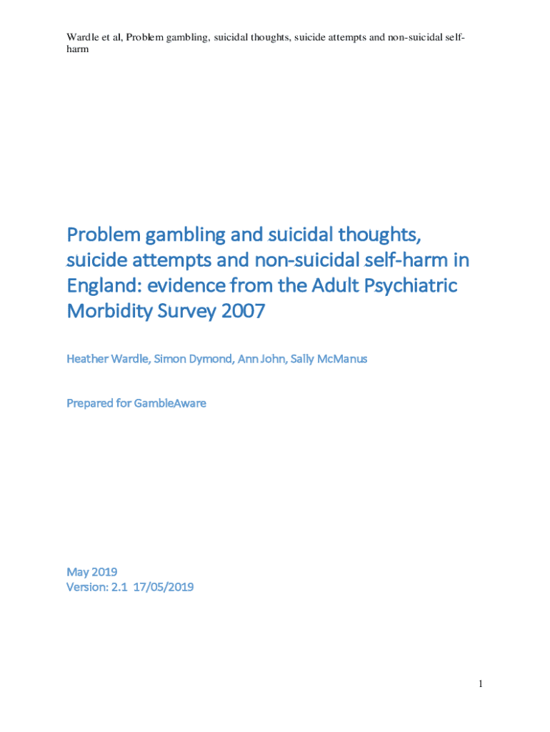 Warble et al., Problem gambling, suicidal thoughts, suicide attempts and nonsuicidal selfharmProblem gambling and suicidal thoughts,