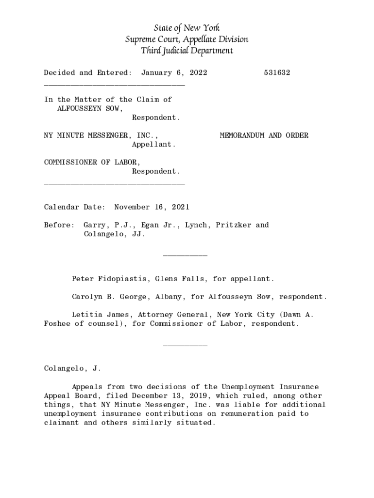 State of New York Supreme Court, Appellate Division Third Judicial Department Decided and Entered: January 6, 2022 ___531632In the Matter of the Claim of ALFOUSSEYN SOW, Respondent. NY MINUTE MESSENGER,