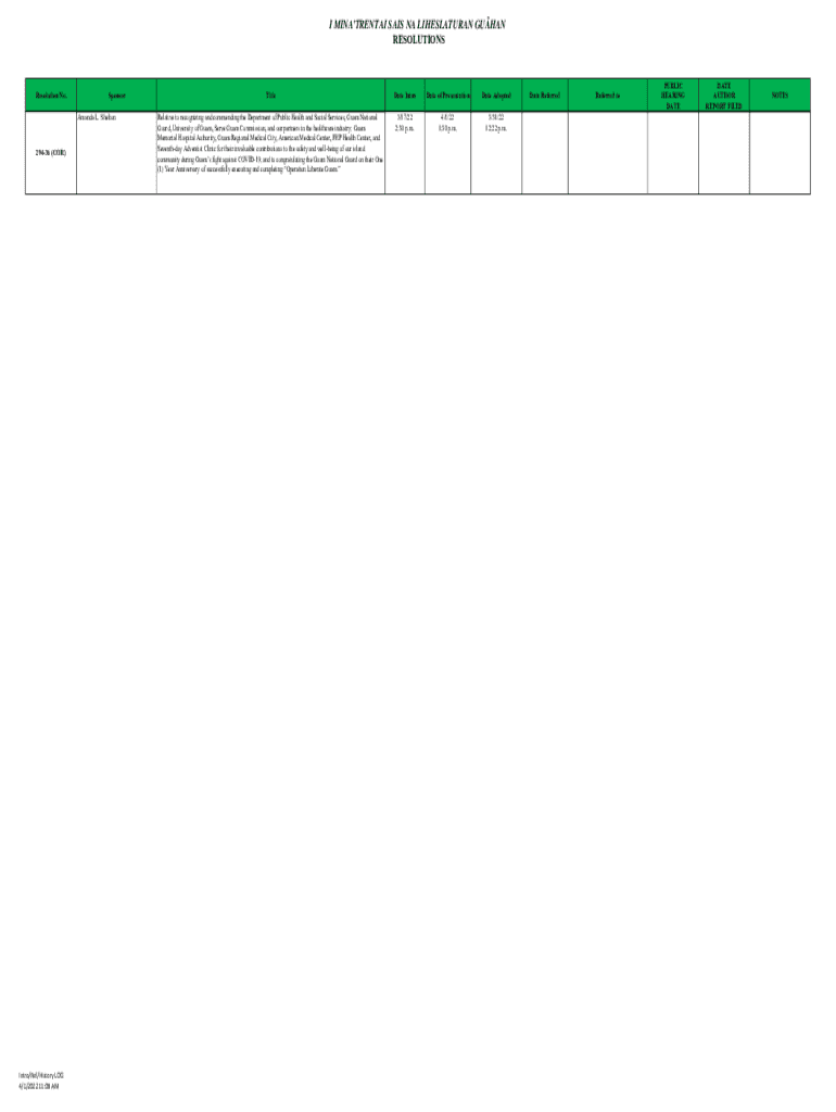 Get the free Resolution No. 380-36 (COR) - Guam Legislature