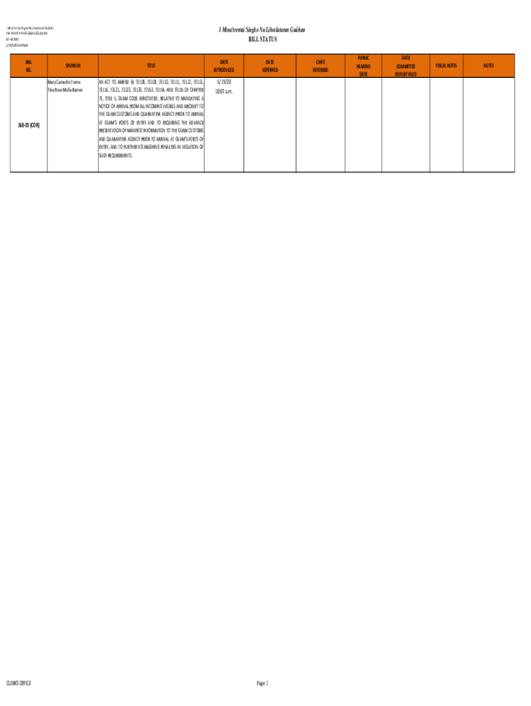 Get the free I Mina'trentai Singko Na Liheslaturan Guhan BILL STATUS ...