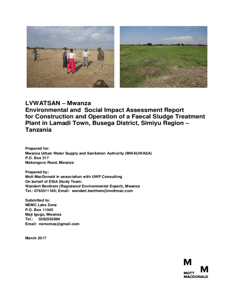 WATSON Wanna Environmental and Social Impact Assessment Report for Construction and Operation of a Fecal Sludge Treatment Plant in Lamar Town, Buses District, Simian Region Tanzania Prepared for: