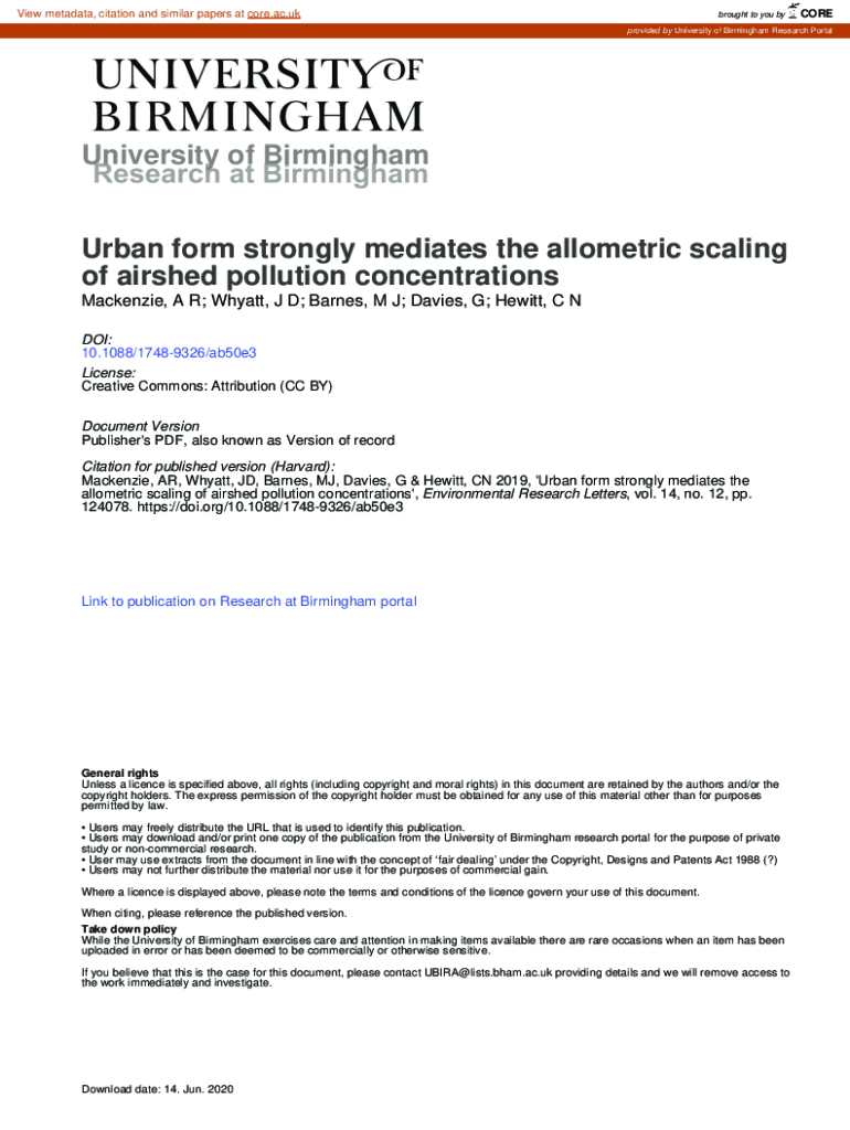 Get the free Urban form strongly mediates the allometric scaling of airshed ...