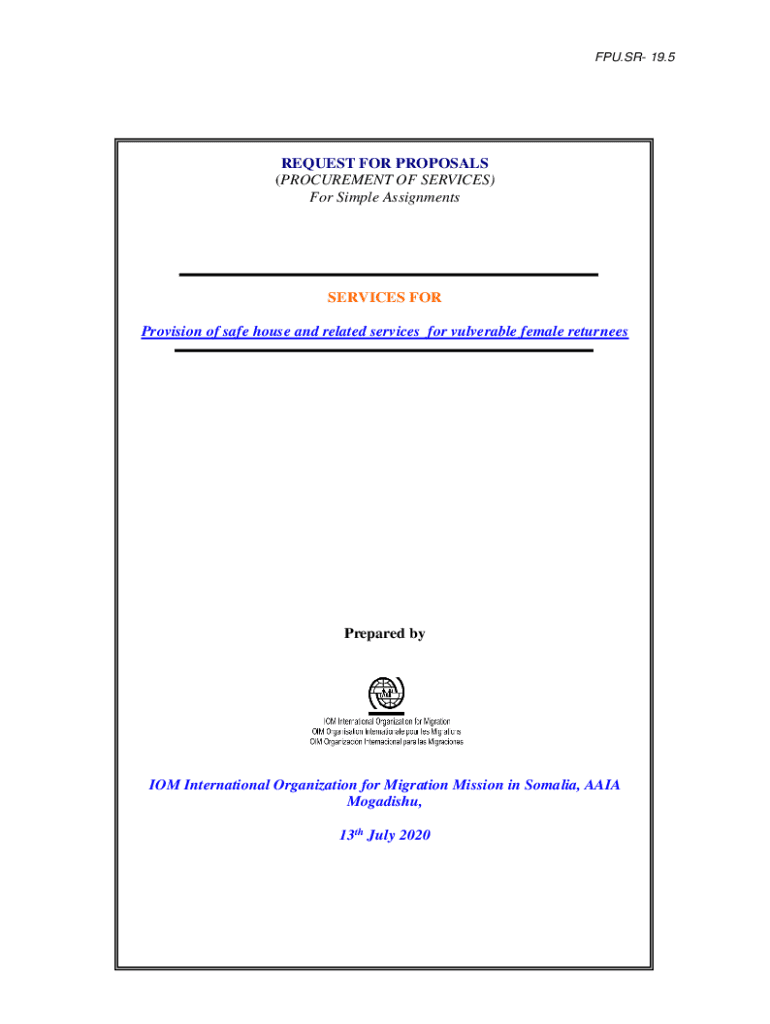FPU.SR 19.5REQUEST FOR PROPOSALS (PROCUREMENT OF SERVICES) For Simple AssignmentsSERVICES FOR Provision of safe house and related services for vulnerable female returneesPrepared by IOM International