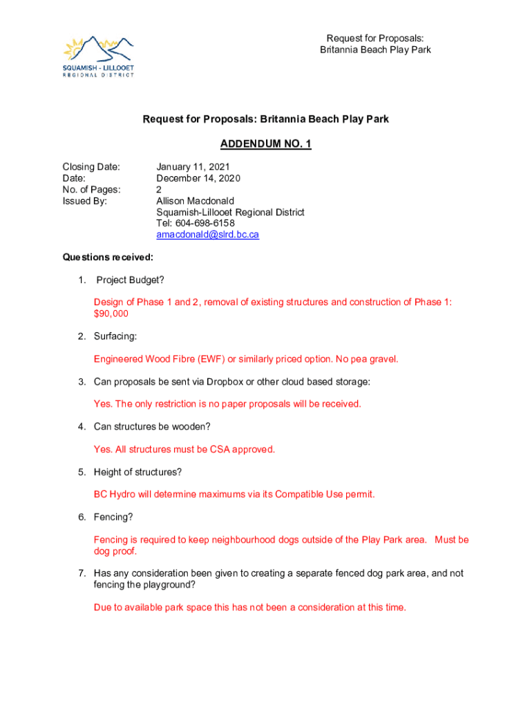 Get the free Britannia Beach Play Park ADDENDUM NO. 1