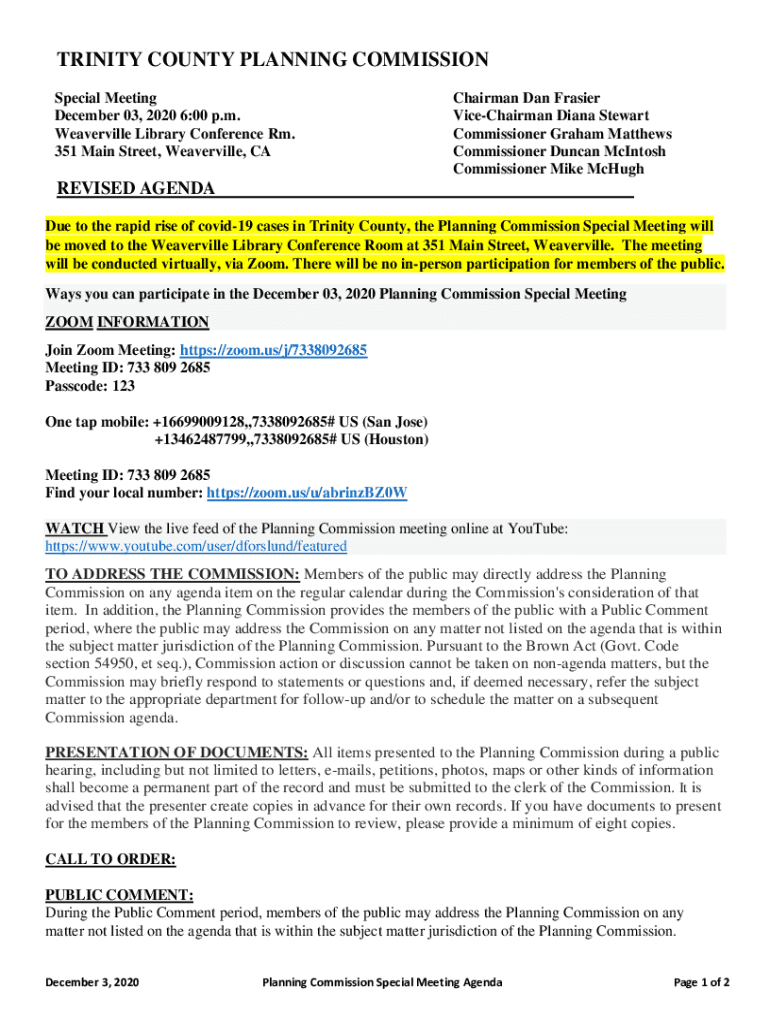 Obtain necessary forms and documents for environmental review from Trinity County.