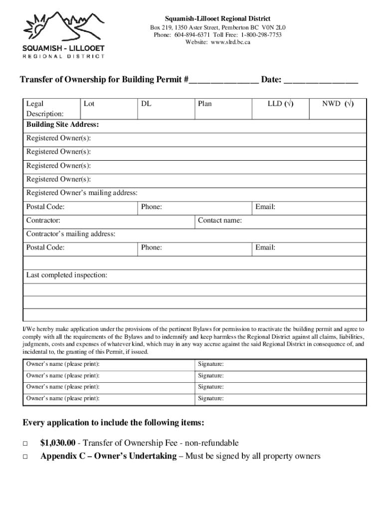 Website: www.slrd.bc.caTransfer of Ownership for Building Permit #___ Date: