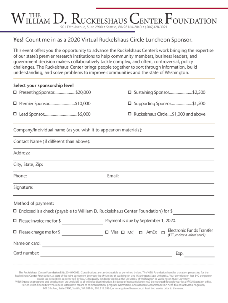 Now sent! L eV tuavir2020 Ruckelshaus Circle Luncheon Sponsorship Menu Featuring former EPA Administrators, Lisa P. Jackson and William K. Rally Past, Present, and Future of Environmental Protection