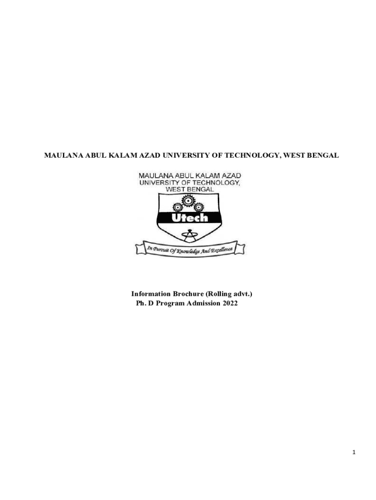MAULANA ABDUL KAL AM AZAD UNIVERSITY OF TECHNOLOGY, WEST BENGALInformation Brochure (Rolling advt.) Ph.D. Program Admission 20221MAULANA ABDUL KAL AM AZAD UNIVERSITY OF TECHNOLOGY, WEST BENGAL (Formerly