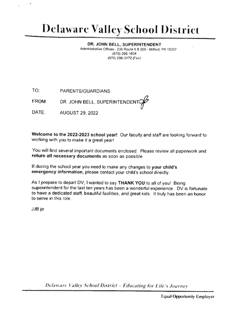 (570) 2963172 (Fax)TO:PARENTSIGUARDIANSFROMDR. JOHN BELL, DATEAUGUST