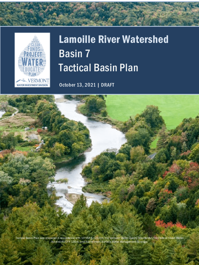 October 13, 2021 | DRAFTTactical Basin Plan was prepared in accordance with 10 VIA 1253(d), the Vermont Water Quality Standards1, the Federal Clean