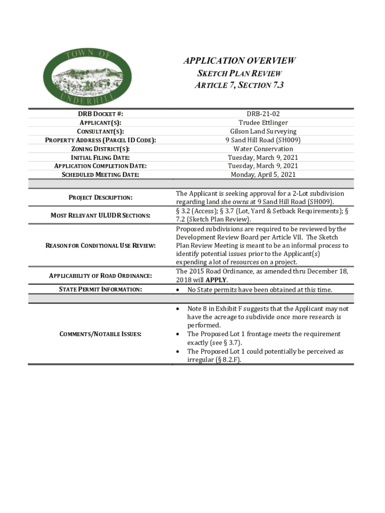 Get the free APPLICATION OVERVIEW - Town of Underhill, VT