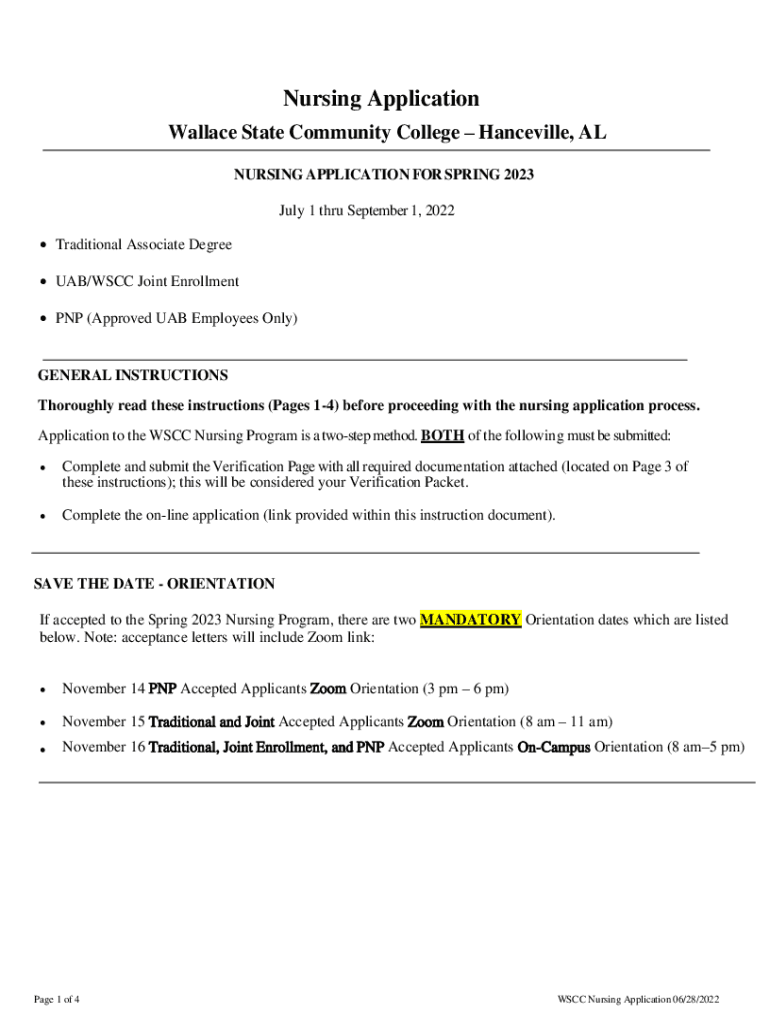Nursing Application Wallace State Community College Mandeville, AL NURSING APPLICATION FOR SPRING 2023 July 1 through September 1, 2022, Traditional Associate Degree UAB/SCC Joint Enrollment PNP (Approved