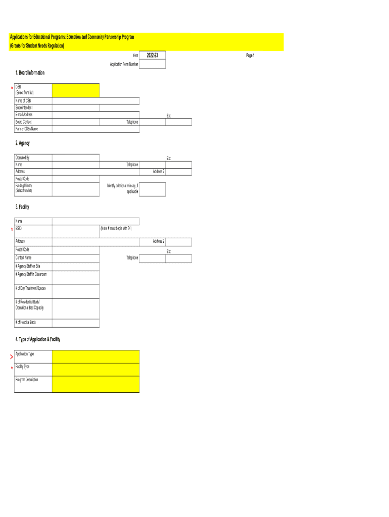 Applications for Educational Programs: Education and Community Partnership Program (Grants for Student Needs Regulation) Year Application Form Number202223Page 111. Board Information×DSB (Select