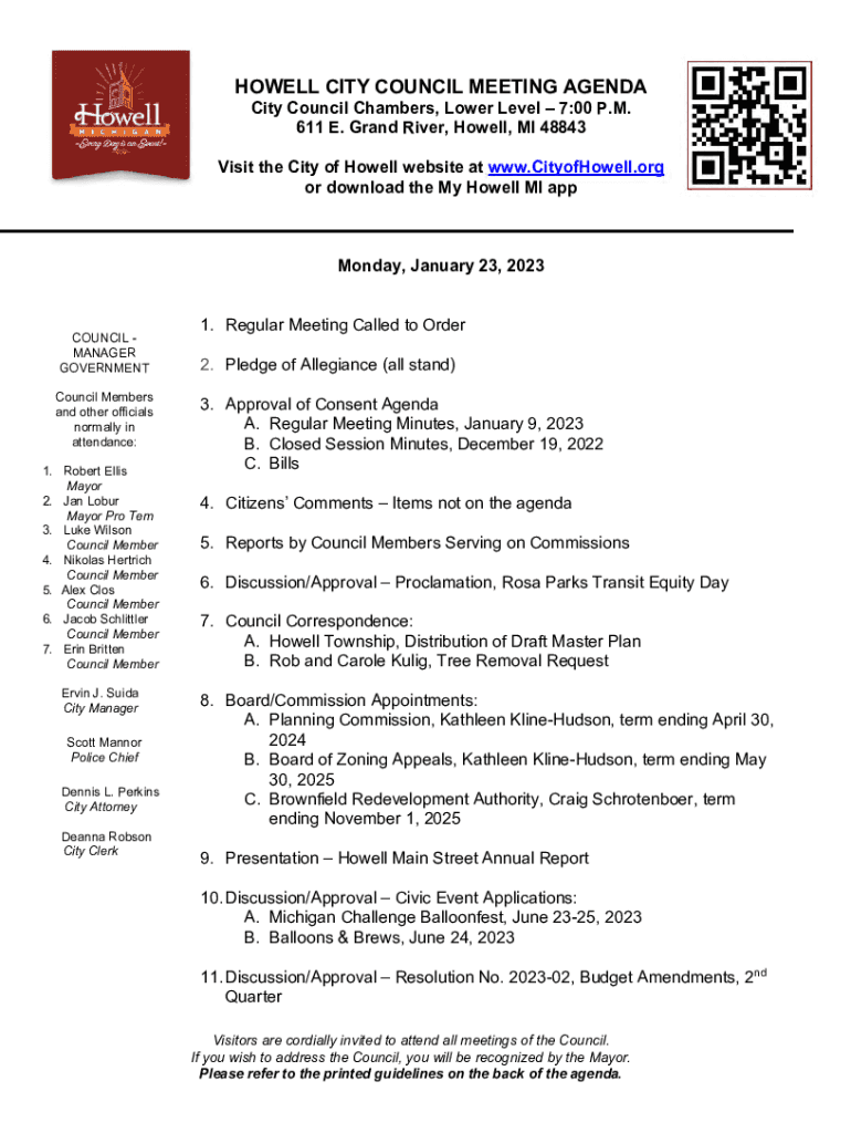 HOWELL CITY COUNCIL MEETING AGENDA City Council Chambers, Lower Level 7:00 P.M. 611 E. Grand River, Howell, MI 48843Visit the City of Howell website at www.CityofHowell.org or download the Howell