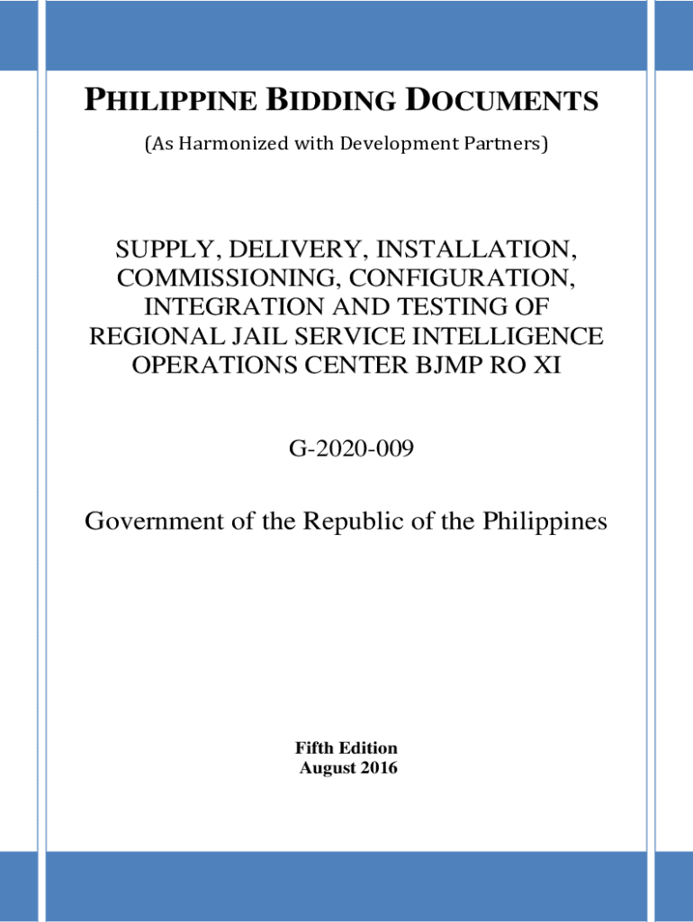 PHILIPPINE BIDDING DOCUMENTS (As Harmonized with Development Partners)SUPPLY, DELIVERY, INSTALLATION, COMMISSIONING, CONFIGURATION, INTEGRATION AND TESTING OF REGIONAL JAIL SERVICE INTELLIGENCE OPERATIONS