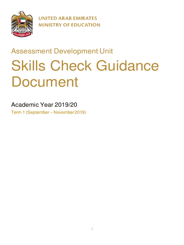 Assessment Development Unit Skills Check Guidance Document Academic Year 2019/20 Term 1 (September November 2019)1Table of Contents1.0 Overview32.0 What is a Skills Check?33.0 What will they look