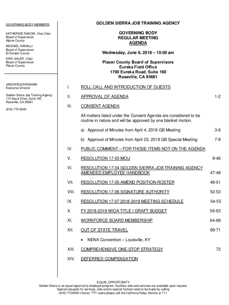 GOVERNING BODY MEMBERSGOLDEN SIERRA JOB TRAINING AGENCYKATHERINE Kraków, Vice Chair
