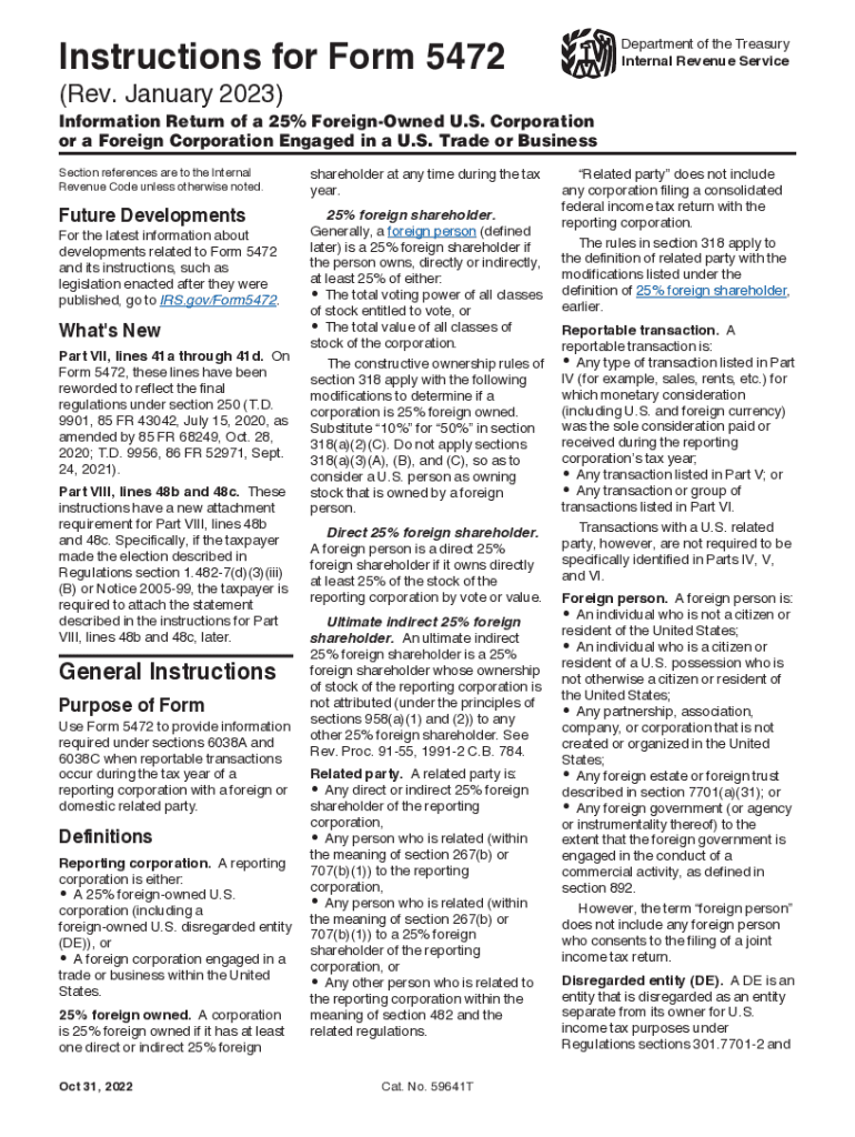 Instructions for Form 5472Department of the Treasury Internal Revenue Service(Rev. January 2023)Information Return of a 25% ForeignOwned U.S. Corporation or a Foreign Corporation Engaged in a U.S.