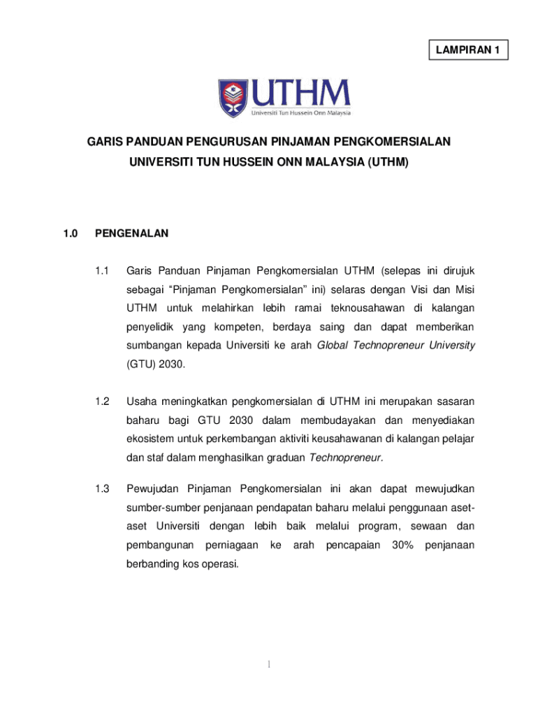 UNIVERSITY TUN HUSSEIN ON MALAYSIA (THM)1.0PENGENALAN1.1Garis Andean Benjamin Pengkomersialan THM (selects in drunk