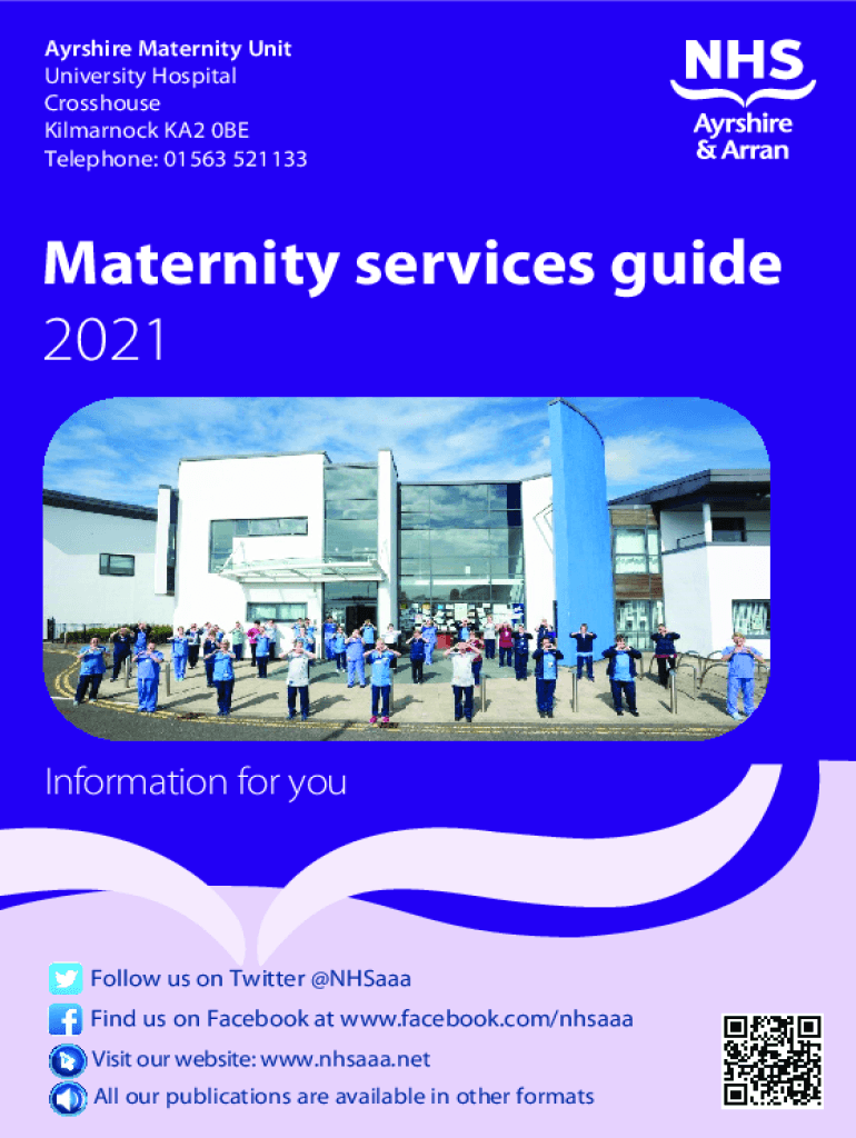 Ayrshire Maternity Unit University Hospital Cross house Kilmarnock KA2 0BE Telephone: 01563 521133Maternity services guide 2021Information for follow us on Twitter ENSAAMA Find us on Facebook at www.facebook.com/nhsaaa