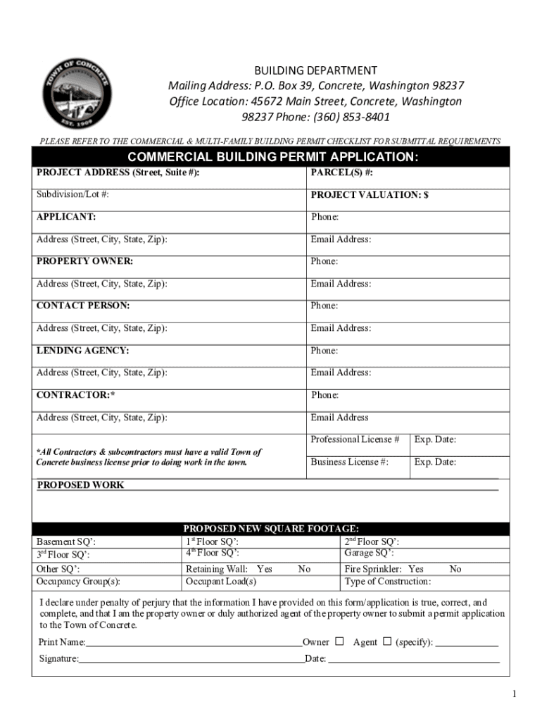 Get the free Building DepartmentTown of Concrete, Washington USA