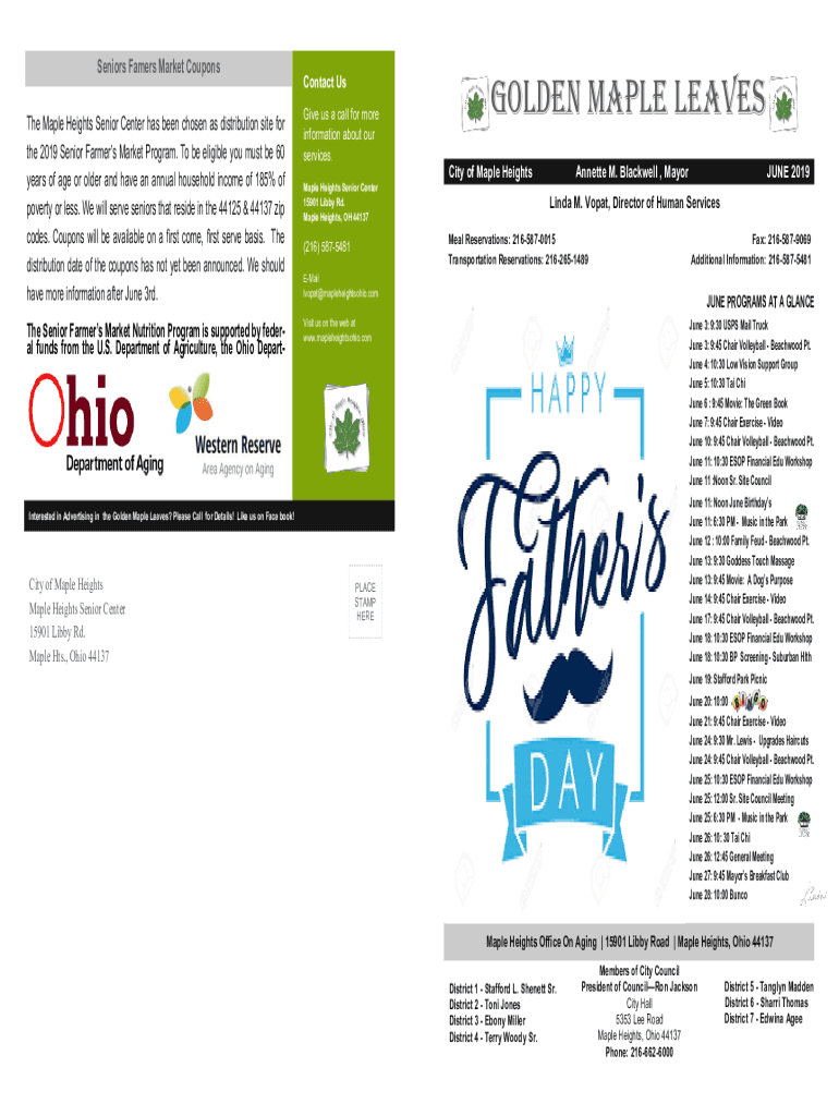 Seniors Farmers Market Coupons The Maple Heights Senior Center has been chosen as distribution site for the 2019 Senior Farmers Market Program. To be eligible you must be 60 years of age or older