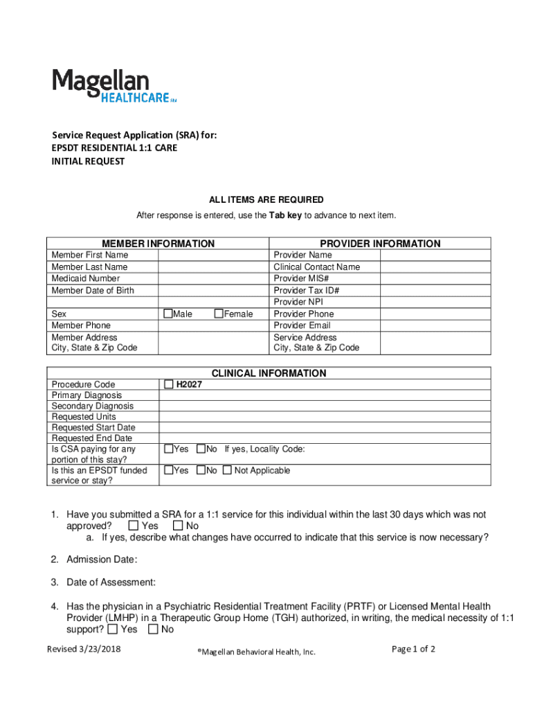 INITIAL REQUEST ALL ITEMS ARE REQUIRED