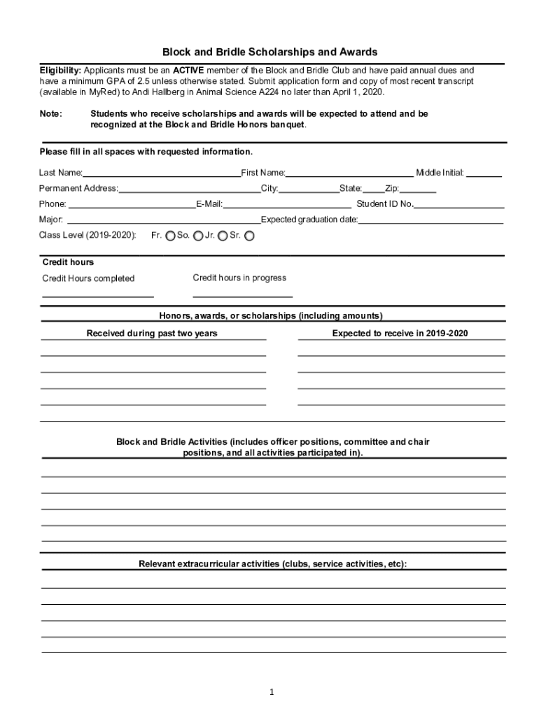 Block And Bridle Scholarship is not the form you're looking for?Search for another form here.