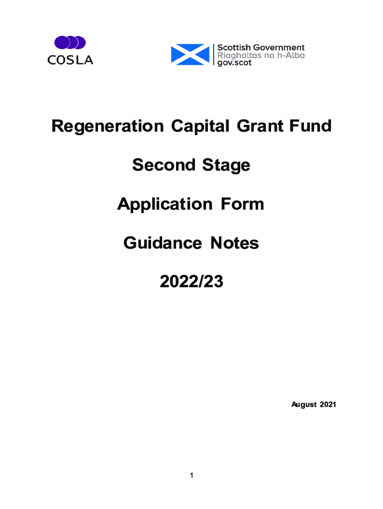 Regeneration Capital Grant Fund Second Stage Application Form Guidance Notes 2022/23August 20211These notes should be referred to when completing the Regeneration Capital Grant Fund second stage application